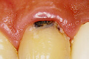 また人工の歯の下の部分に歯垢が溜まっていて接する歯茎が炎症を起こしています。